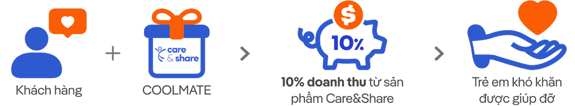 Care & Share là dự án CSR được xây dựng và phát triển bởi Coolmate, trong đó hoạt động trọng tâm là bán hàng gây quỹ và sử dụng quỹ để tổ chức các hoạt động xã hội trọng tâm hướng tới trẻ em